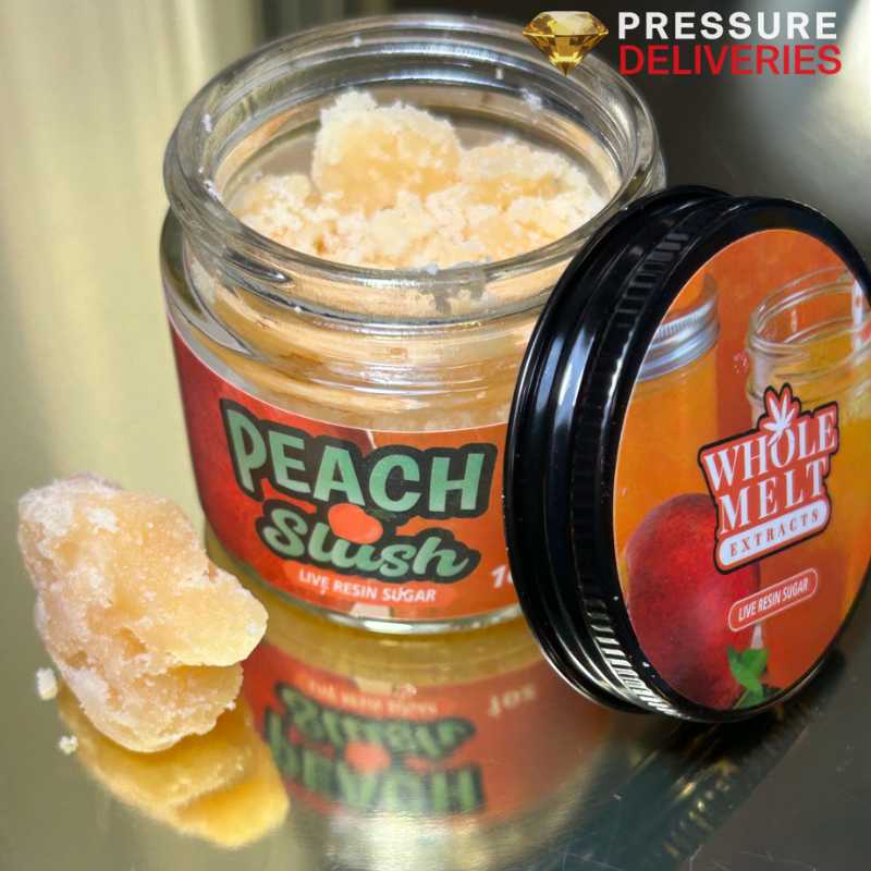 Peach Slush is an ultra-potent, terpene-rich concentrate crafted for experienced consumers who want maximum intensity with bold, expressive flavor. Its golden crystalline texture preserves 4.6% terpenes, delivering layered notes of bright fruit, citrus sweetness, and deep aromatic complexity in smooth, flavorful vapor. The effects build quickly with a strong cerebral lift that sharpens mood and clears mental clutter, followed by steady, balanced body relaxation without immediate heavy sedation. Ideal for high-tolerance users seeking powerful elevation, creative focus, or elevated evening sessions. Extremely potent and not recommended for beginners.
